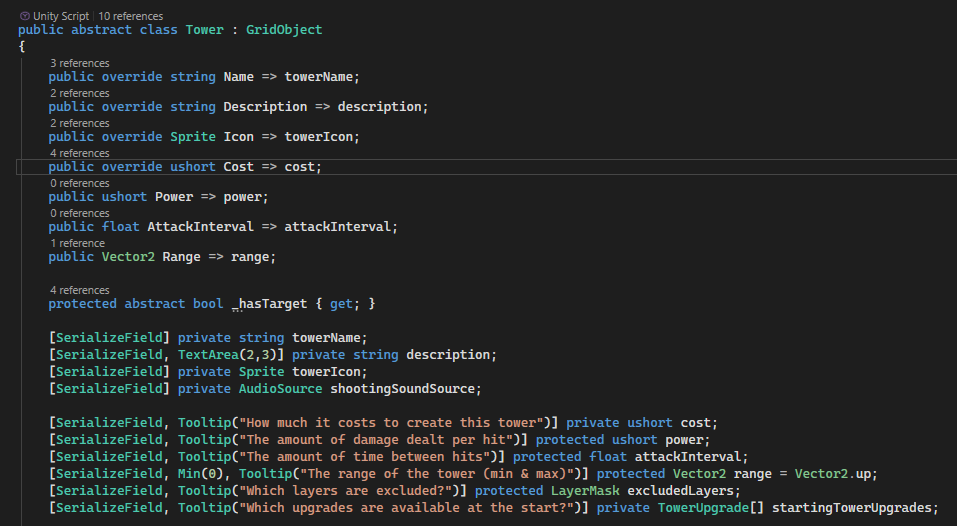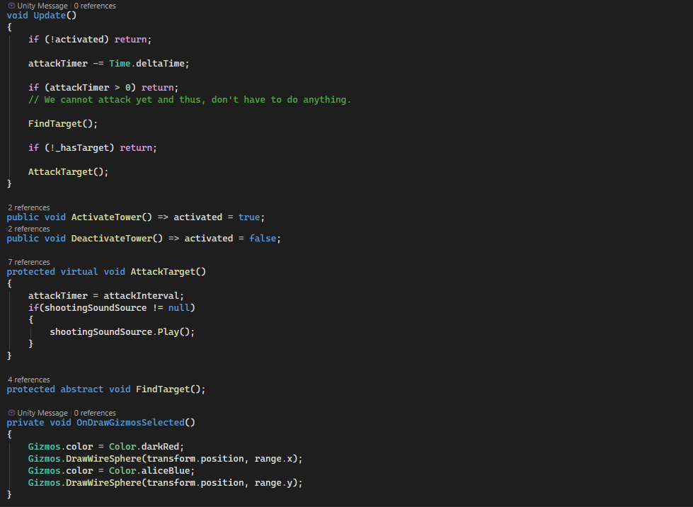 The functionality of towers comes together in this abstract class’ Update method.